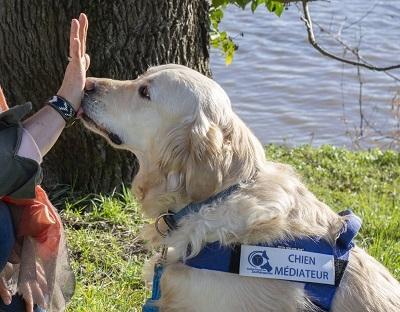 Dans notre hôpital de jour pour enfants, nous prenons en charge des enfants qui présentent des troubles dans la structuration de la personnalité (TND, TSA, Dysharmonies d’évolution..). Ces différentes pathologies se caractérisent par des troubles de la communication et des interactions sociales et du langage. Notre travail thérapeutique se fait par les médiations. Dans ce cadre, nous avons choisi de mettre en place une médiation intégrant un tiers qui est le chien. Les objectifs principaux sont de favoriser les interactions sociales, favoriser la communication verbale et sensorielle, travailler la motricité et développer leur autonomie.