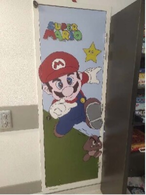 « Rétro pinceaux » est un projet mis en place au sein d’un établissement accueillant des patients détenus avec des troubles psychiatriques. Le projet consiste à mettre de la couleur dans le service grâce à la mise en peinture de certains murs. Thème choisi : celui de l’univers des jeux vidéo décidé en brainstorming avec les patients. Cette activité permet de rendre plus agréable le service, d’apprécier les facultés de concentration, d’apaisement, la dextérité des patients, l’autonomie et la prise d’initiative.