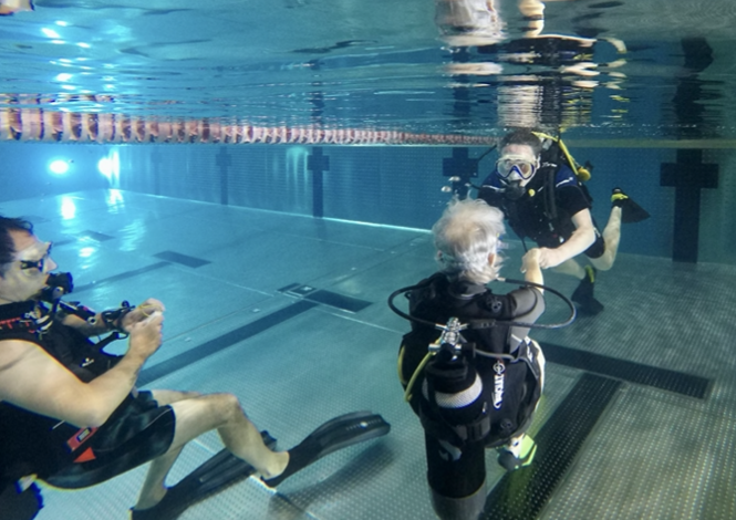 Notre projet est d’organiser des ateliers de plongée sous-marine entre patients et soignants. Partager cette expérience, où chacun peut re-éprouver les limites du corps en mouvement, permettra de dépasser les dissymétries de la relation et de se découvrir autrement.