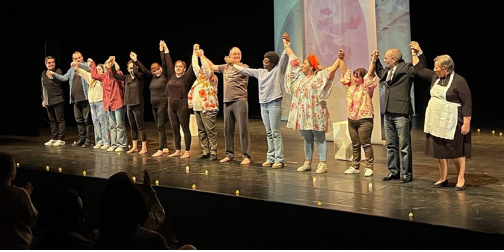 Au cours d’un atelier à médiations artistiques intitulé « Ecouter, voir, parler », des soignants découvrent le potentiel extraordinaire d’un conte, A travers les brèches, d’Émeline Ferron, illustratrice et réalisatrice de films d’animation. A travers l’histoire d’un vase brisé puis reconstruit, le conte aborde avec poésie et finesse la question du traumatisme et du soin. À partir de ce que beaucoup considèrent comme une métaphore de leur résilience dans leur parcours de soin, le groupe imagine alors un diaporama puissant, émouvant, mêlant images et paroles de patients. Cette réalisation devient alors le point de départ d’un véritable spectacle, donné en public dans un théâtre voisin et partenaire. Un projet qui a renforcé la motivation des patients, leur estime de soi, et a permis de « pousser les murs » de l’hôpital…